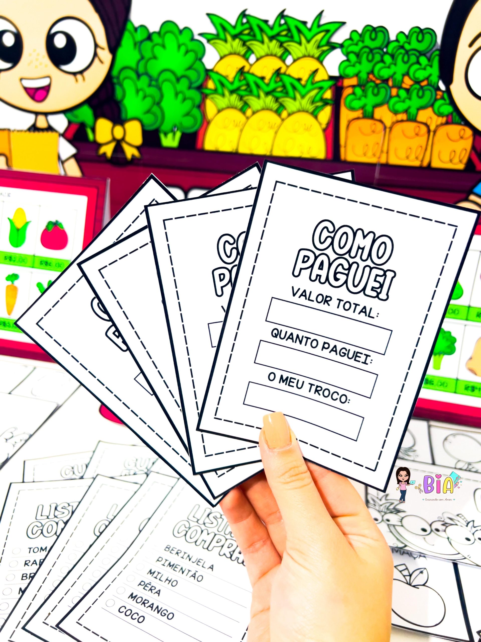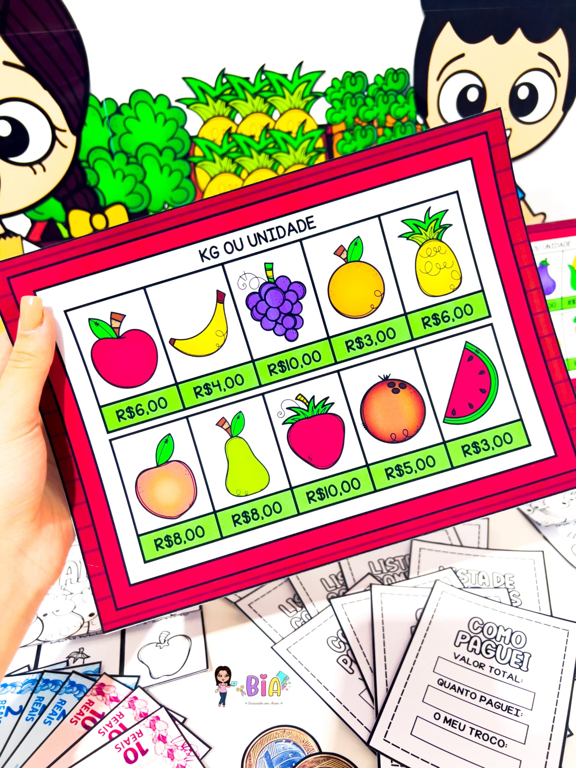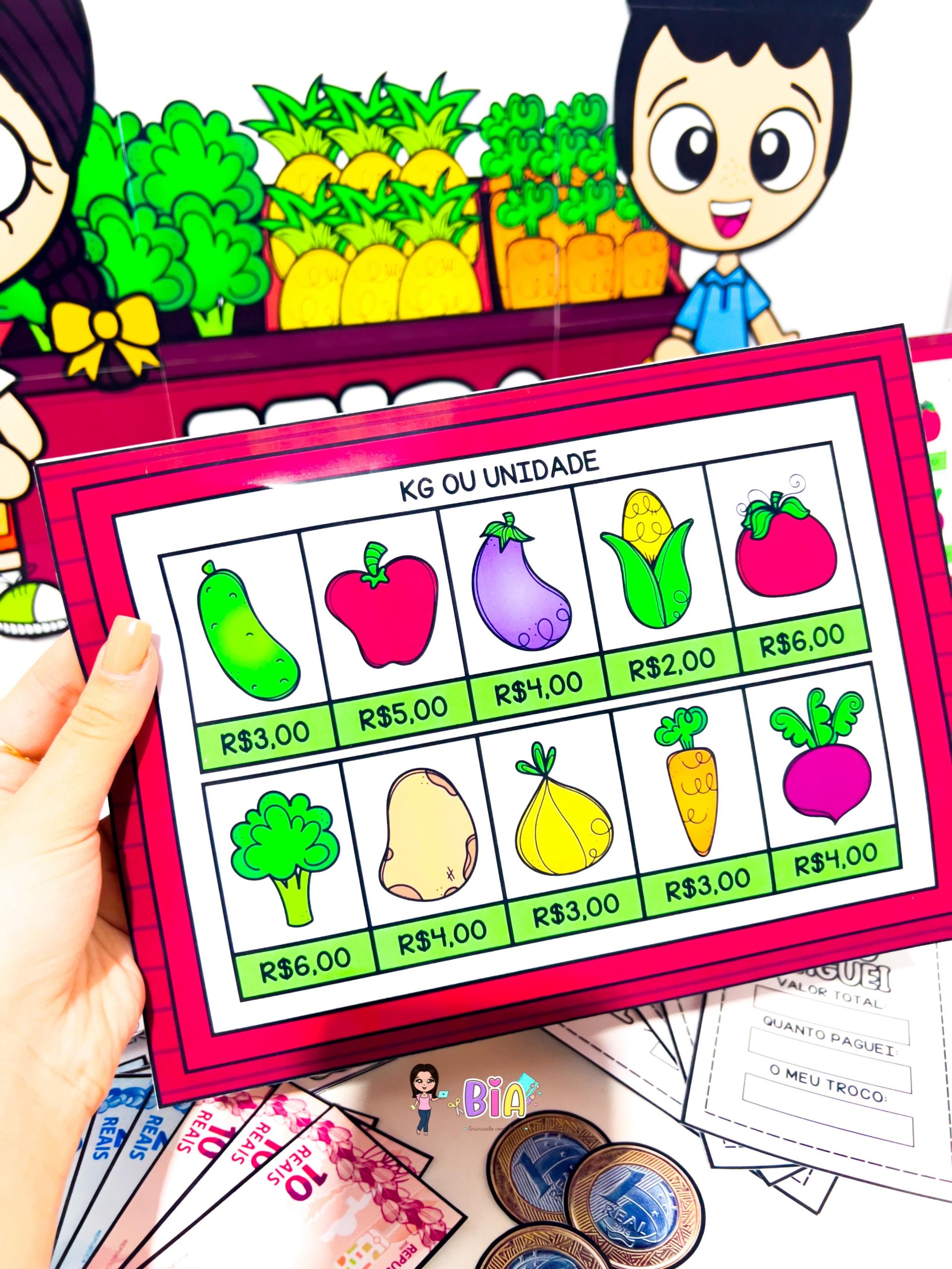 Material criado para proporcionar às crianças uma experiência lúdica e educativa sobre compras, valores e o cotidiano da feira 😍🧺