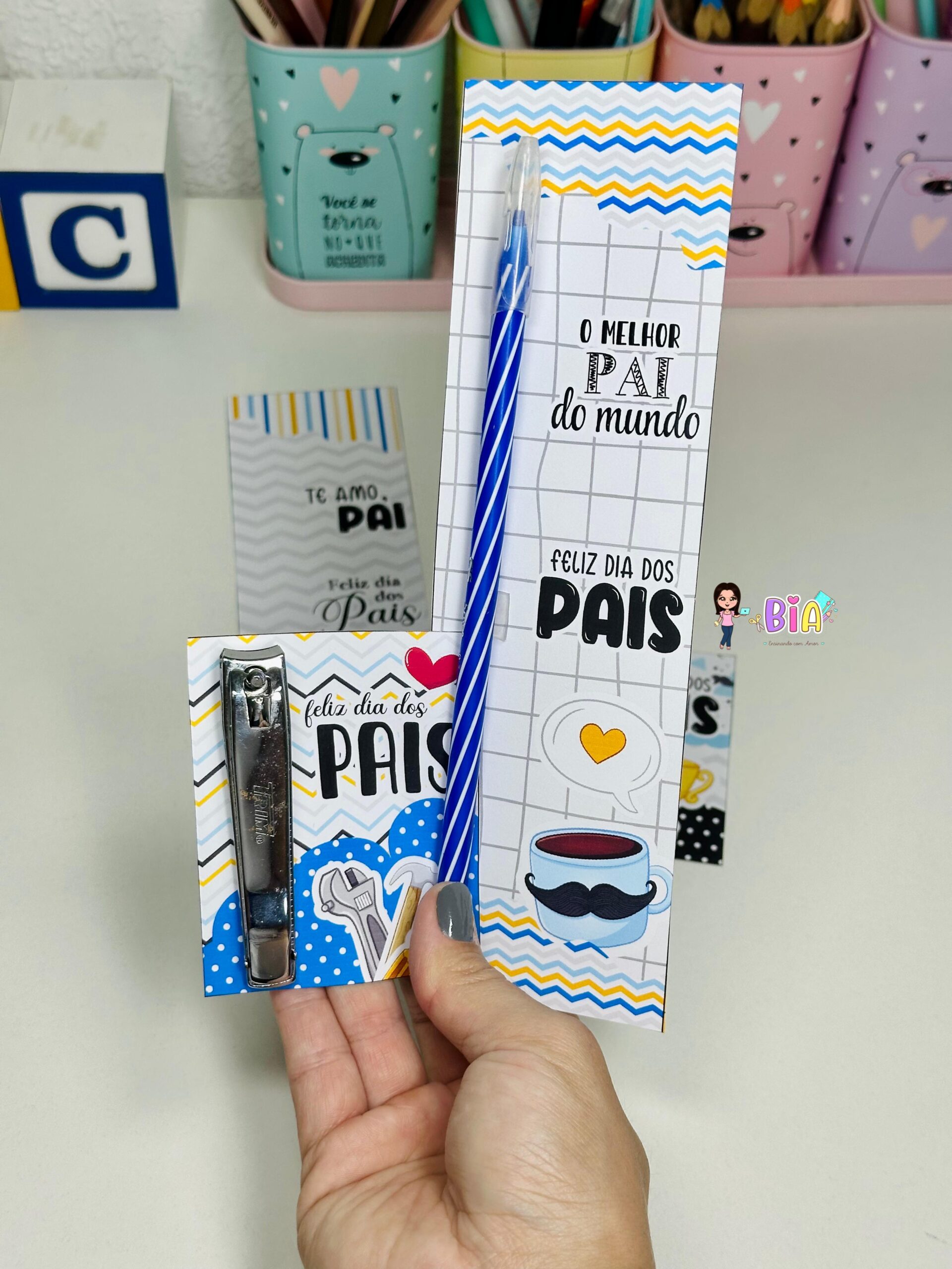 Porta Caneta e Tag Cortador de Unha – Dia dos Pais 👨🏻💙